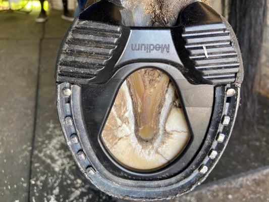 - Landing and Push Off: In natural movement, the heel lands first, followed by the frog, and then the toe pushes off. The pad supports this sequence by cushioning the heel strike, allowing for a gradual transfer of weight to the frog, and then to the toe, facilitating a natural push-off without the rigidity of traditional metal shoes.